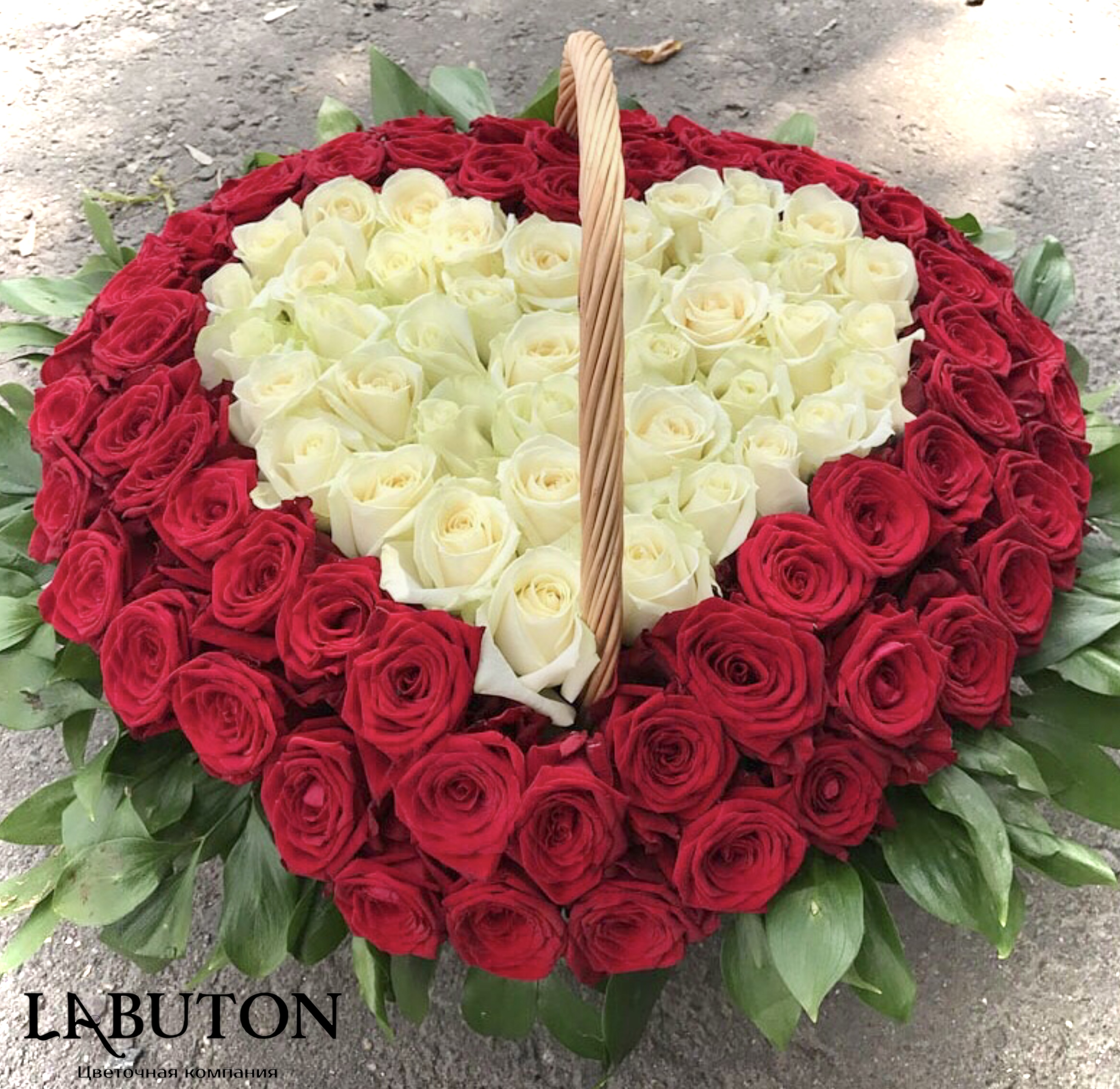 Роскошное сердце из 49 белых и красных роз передаст все оттенки любви и страсти. Этот великолепный подарок выступает свидетельством серьезности и искренности Ваших отношений, которые вы питаете к получателю букета!